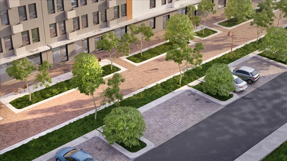 Благоустройство придомовой территории – это не только детские и спортивные площадки, но и создание новых современных пространств рядом с домами для комфортного перемещения жителей района, внутри комплекса для спокойного отдыха и приятных прогулок жильцов.