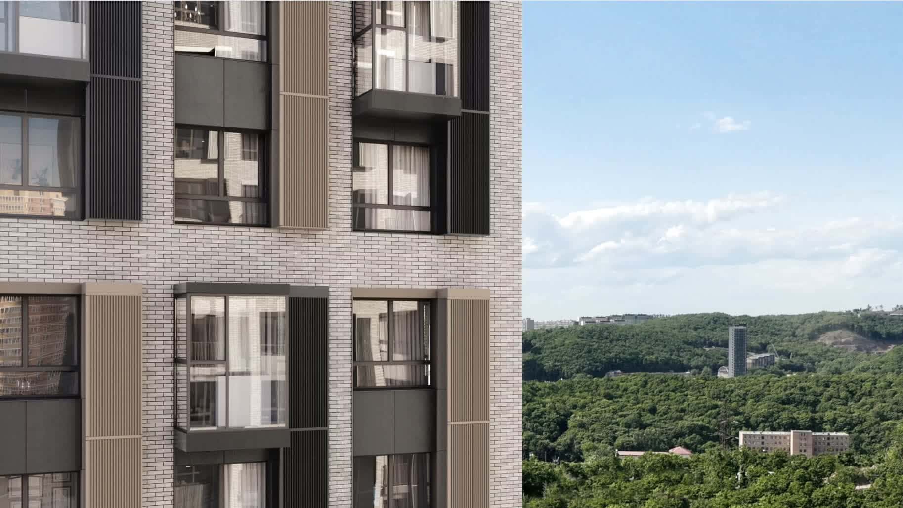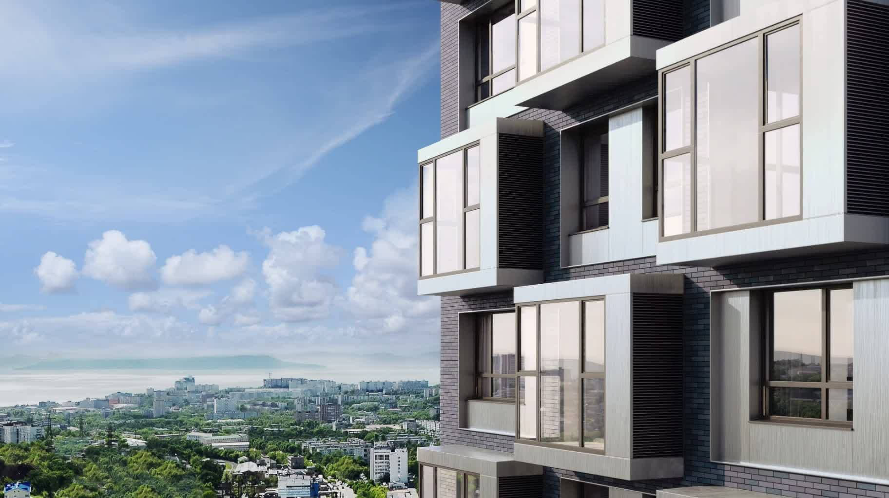 Концепция вентилируемых фасадов жилого комплекса «Флагман» была создана известным архитектурным бюро GREN (ABG). Авторский подход проявляется даже в таких деталях, как контрастные цветовые решения в сочетании алюминиевых композитных панелей и бетонной плитки.