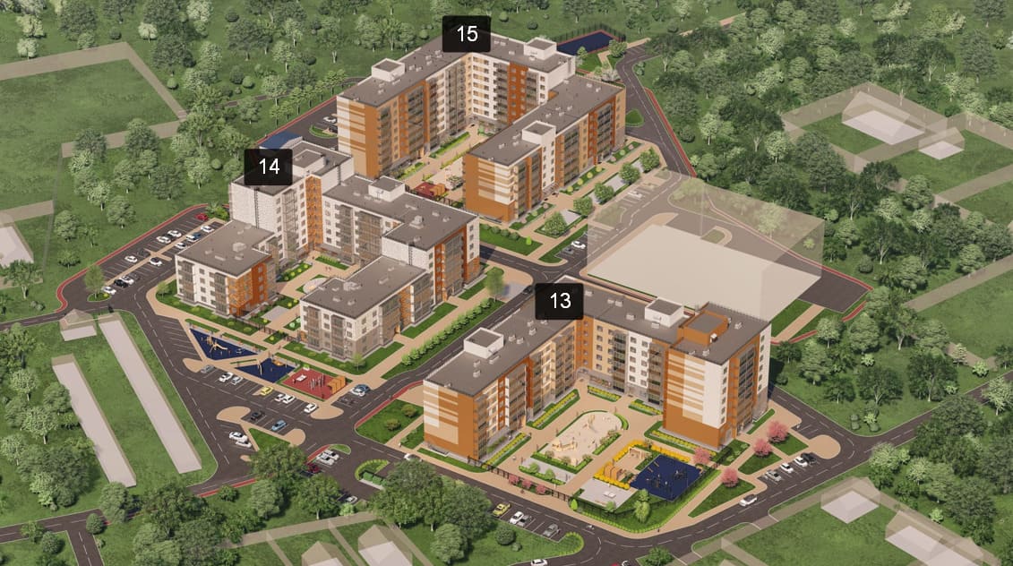 Для любителей активного образа жизни во дворах домов и на внешней территории предусмотрены: