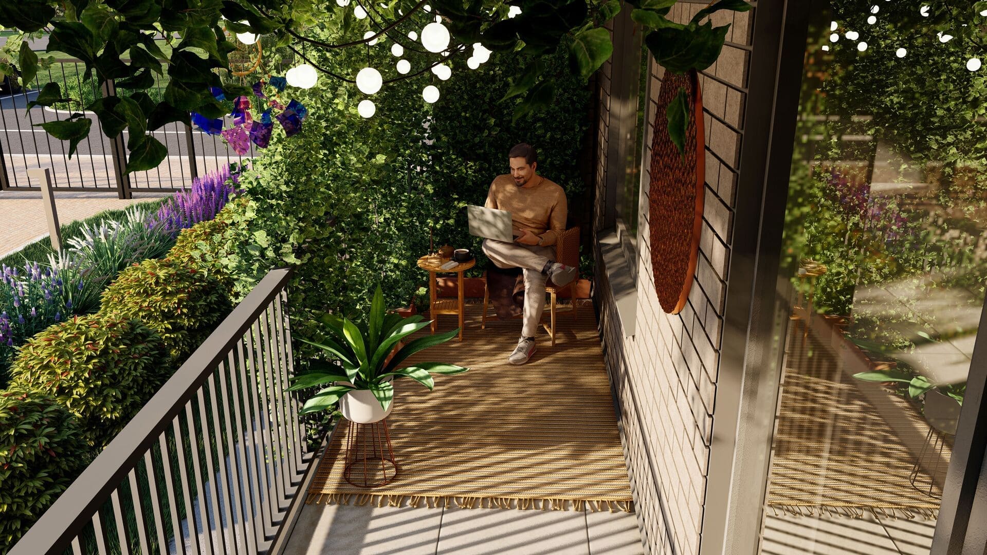 Зоны отдыха, гармонично распределенные по территории двора, оборудованы скамейками с навесами от солнца, шезлонгами и уличной мебелью для настольных игр.