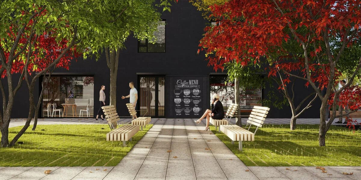 Концепция предусматривает организацию внутреннего двора без вереницы припаркованных автомобилей и душных автомобильных дорог.
