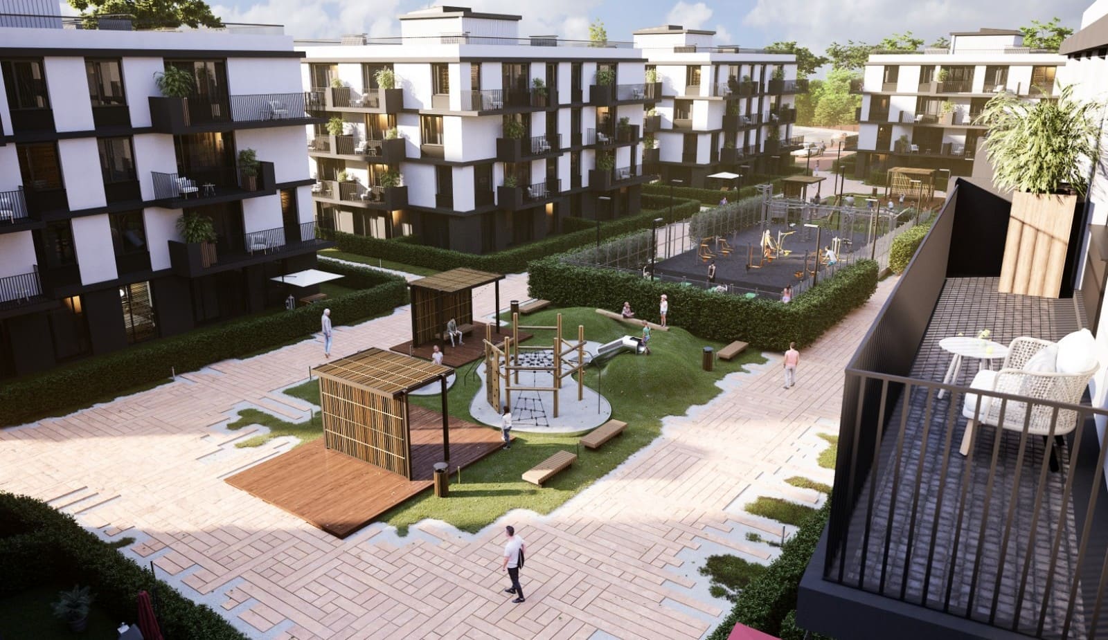 - Прогулочный парк с детскими и спортивными площадками;