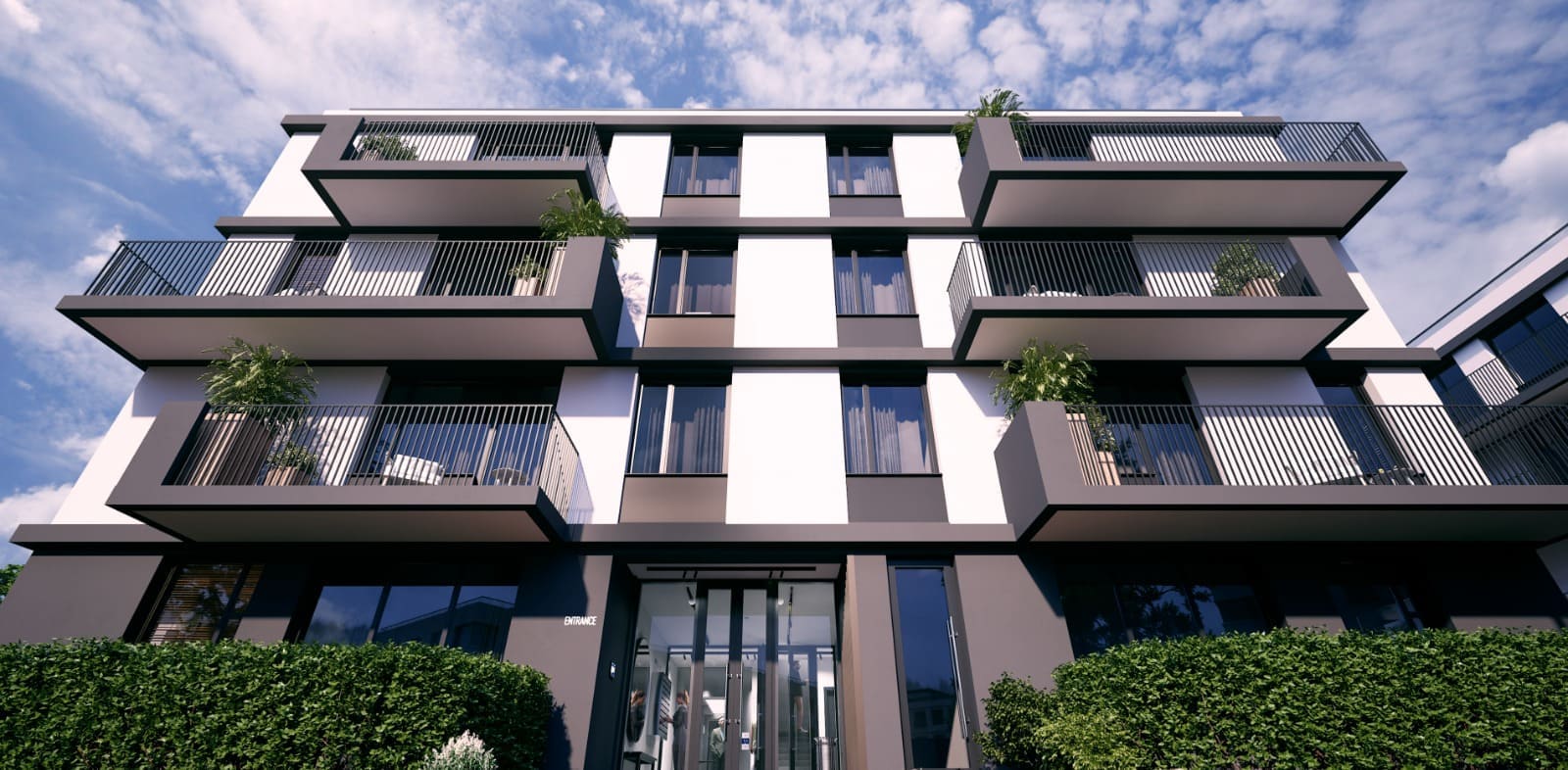 Квартиры на первых этажах оснащены приватными террасами площадью от 21,03 м² до 65,82 м².