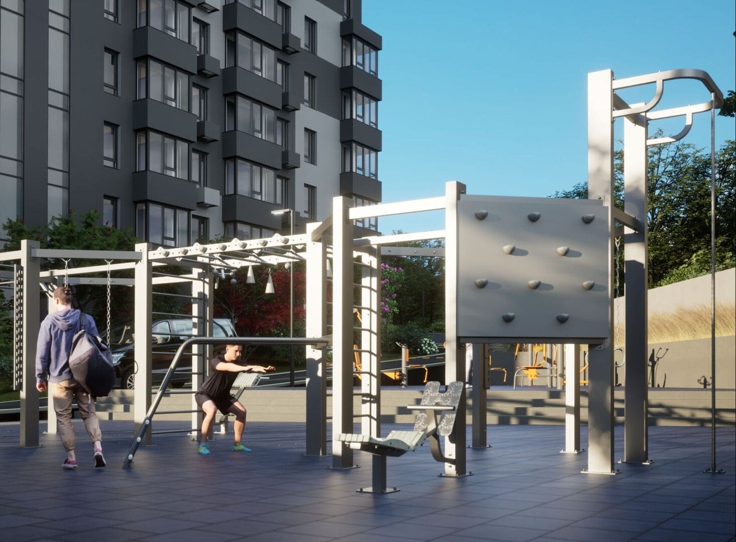 Для любителей активного образа жизни застройщиком предусмотрена Workout площадка c оборудованием для силовых нагрузок и гимнастических упражнений.