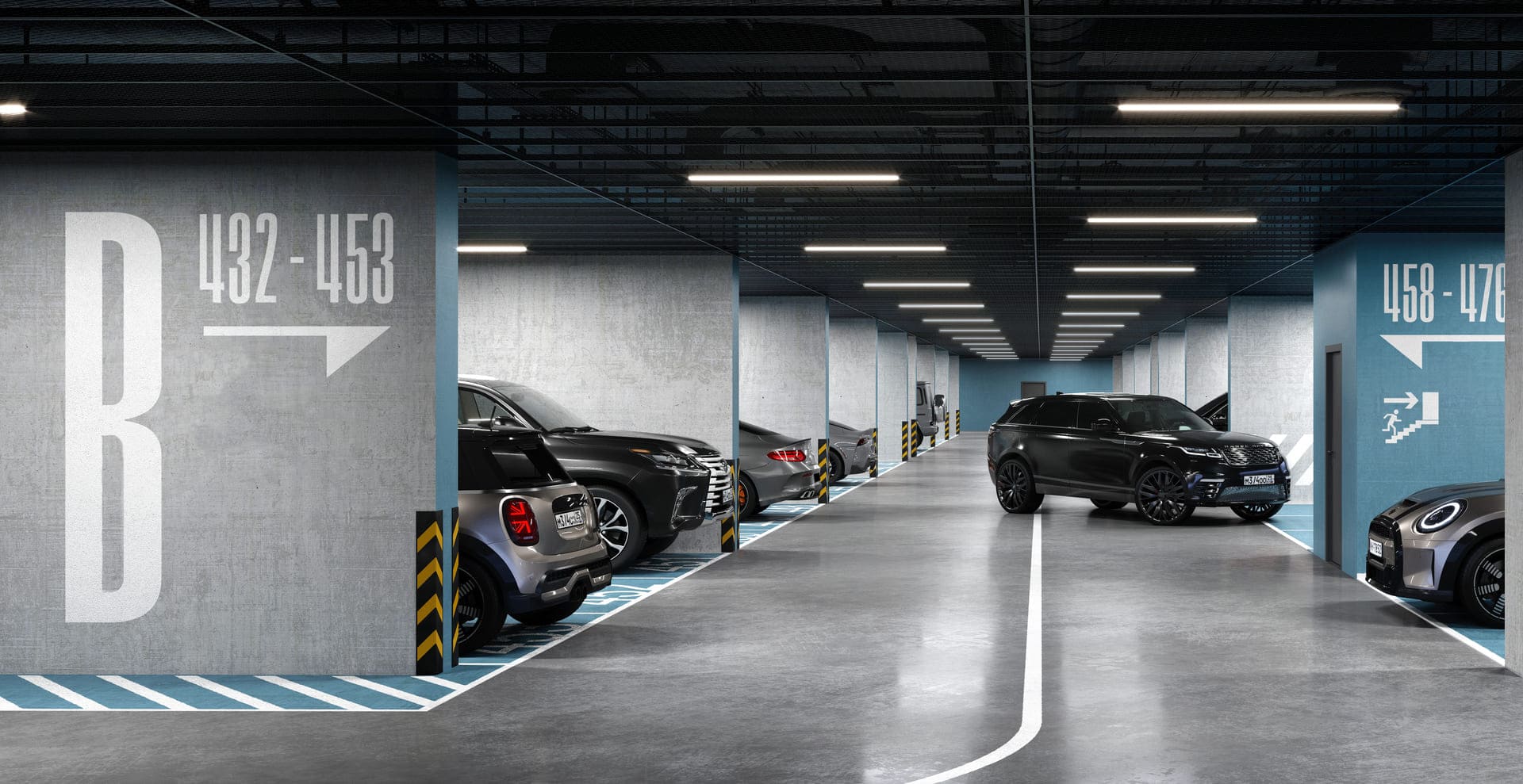 Для автовладельцев предусмотрен 3-этажный подземный паркинг на 1070 машино-мест.