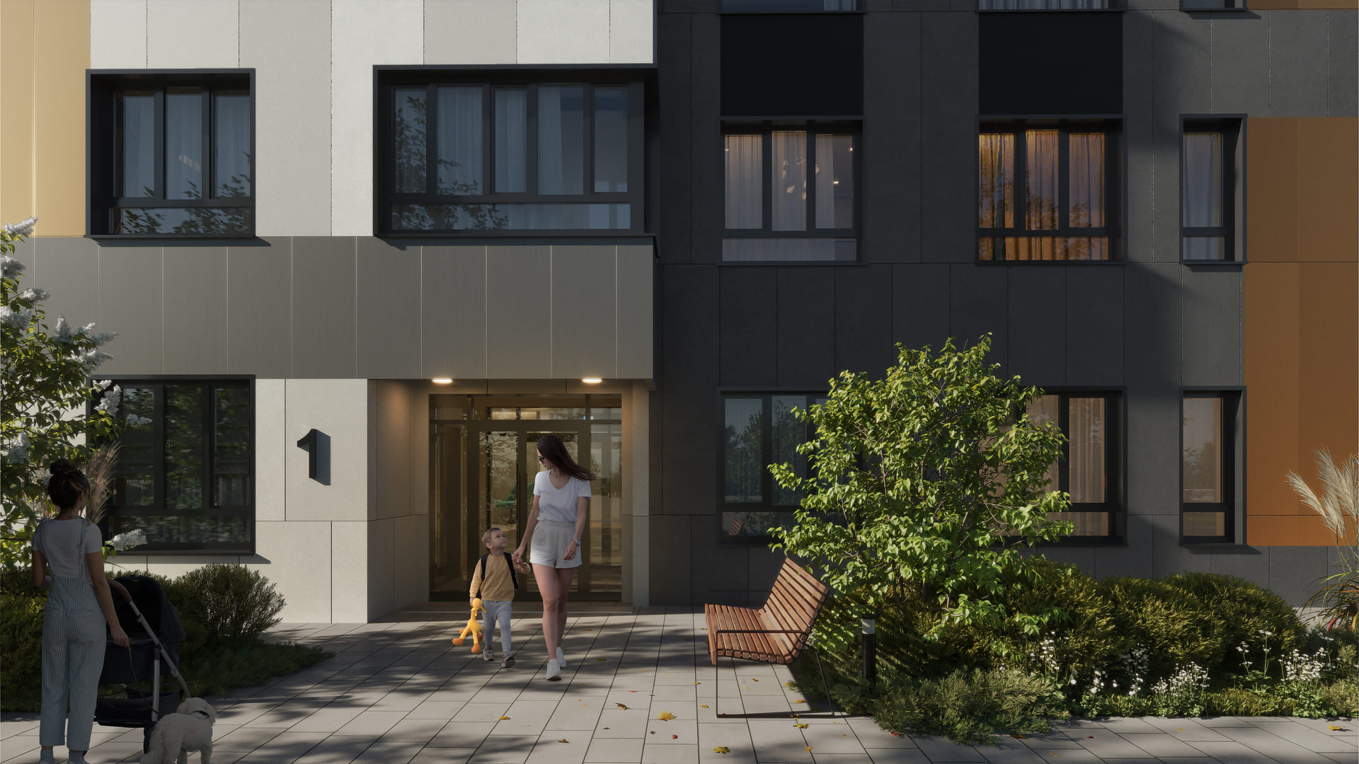 Расстановка жилых корпусов формирует внутренний двор, создающий приватное пространство, закрытое от посторонних. Уютная атмосфера позволяет моментально переключиться на режим отдыха после рабочего дня.