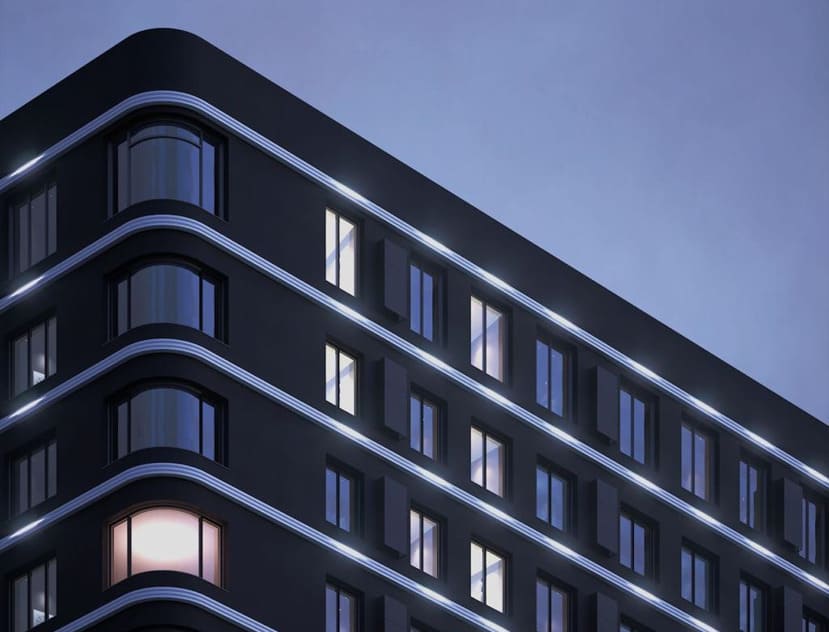 На каждом этаже имеются 4 квартиры с эксклюзивными радиусными изогнутыми окнами, обеспечивающими панорамный обзор на 180 градусов.