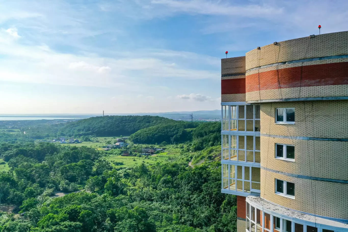 Витражное остекление балконов и лоджий не препятствует проникновению дневного света в квартиру и обеспечивает панараму на прилегающие окресности.
