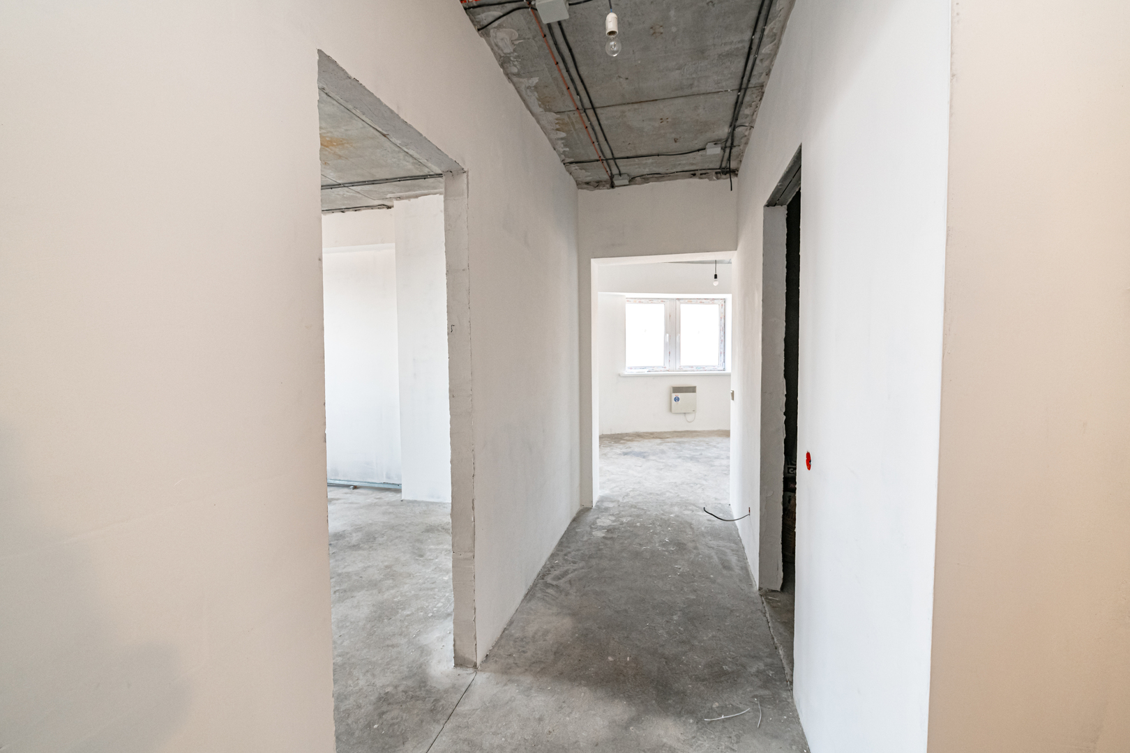 - Выровненные пол и стены, подготовленные под финишные покрытия;