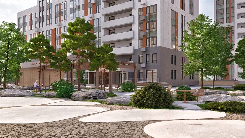 Благоустройство придомовой территории – это не только детские и спортивные площадки, но и создание новых современных пространств рядом с домами для комфортного перемещения жителей района, внутри комплекса для спокойного отдыха и приятных прогулок жильцов.