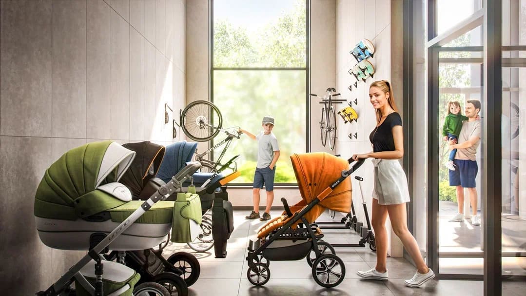 - Колясочные с зоной для велосипедов и самокатов;