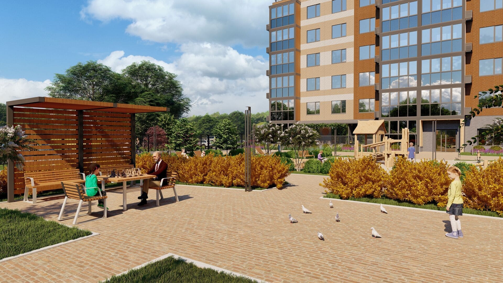 При проектировании были учтены множество деталей, которые позволят резидентам получать удовольствие от жизни в микрорайоне: