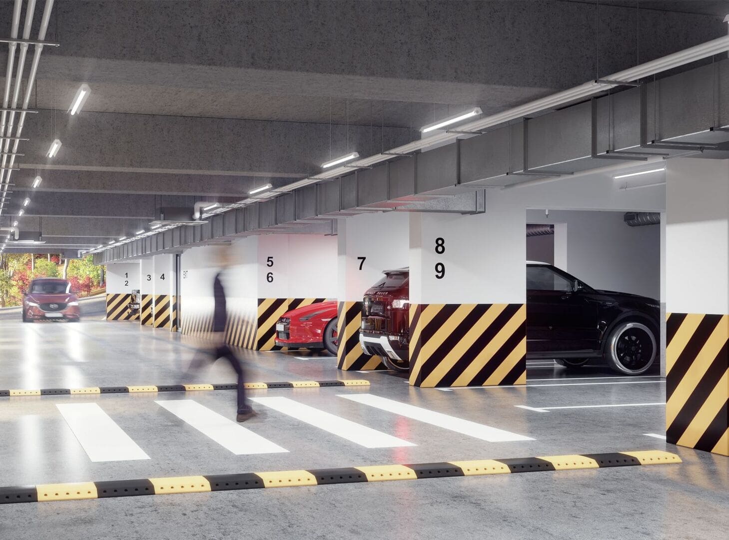 Для автолюбителей предусмотрен 3-уровневый подземный паркинг общей площадью 4781,56 м² на 176 машино-мест. Безопасность транспортных средств обеспечивает передовая система пожаротушения с датчиками. Тепловое оборудование и механическая система вентиляции стабильно поддерживают комфортную температуру воздуха под землёй круглый год. Три бесшумных скоростных лифта в кратчайшие сроки организуют доставку с территории парковки на любой этаж.