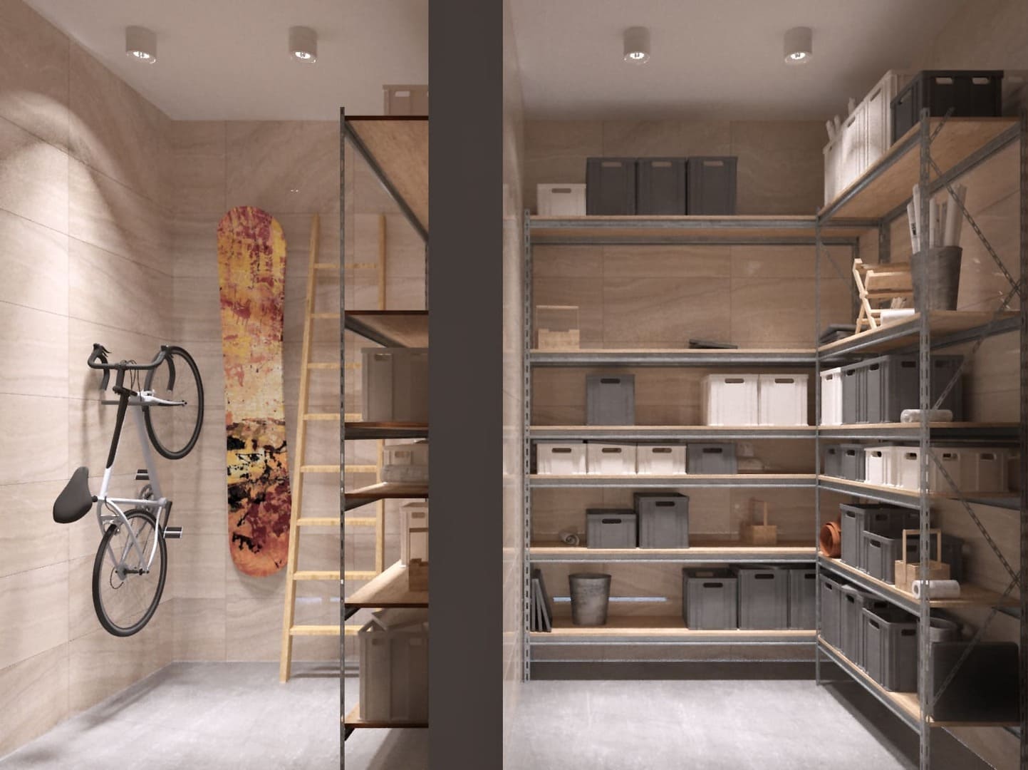 Кладовые помещения от 3,5 до 11 м² на нижних этажах с доступом прямо с этажа на лифте.