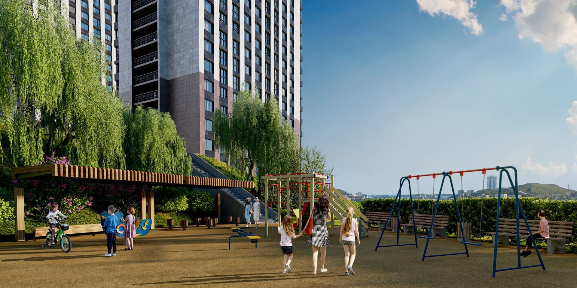 Удобная транспортная инфраструктура - к комплексу будут построены 2 отдельные дороги со стороны улиц Снеговая и Днепровская. Такое решение позволит жителям легко попасть в комплекс из разных районов города, дорога до центра займет 15 минут.