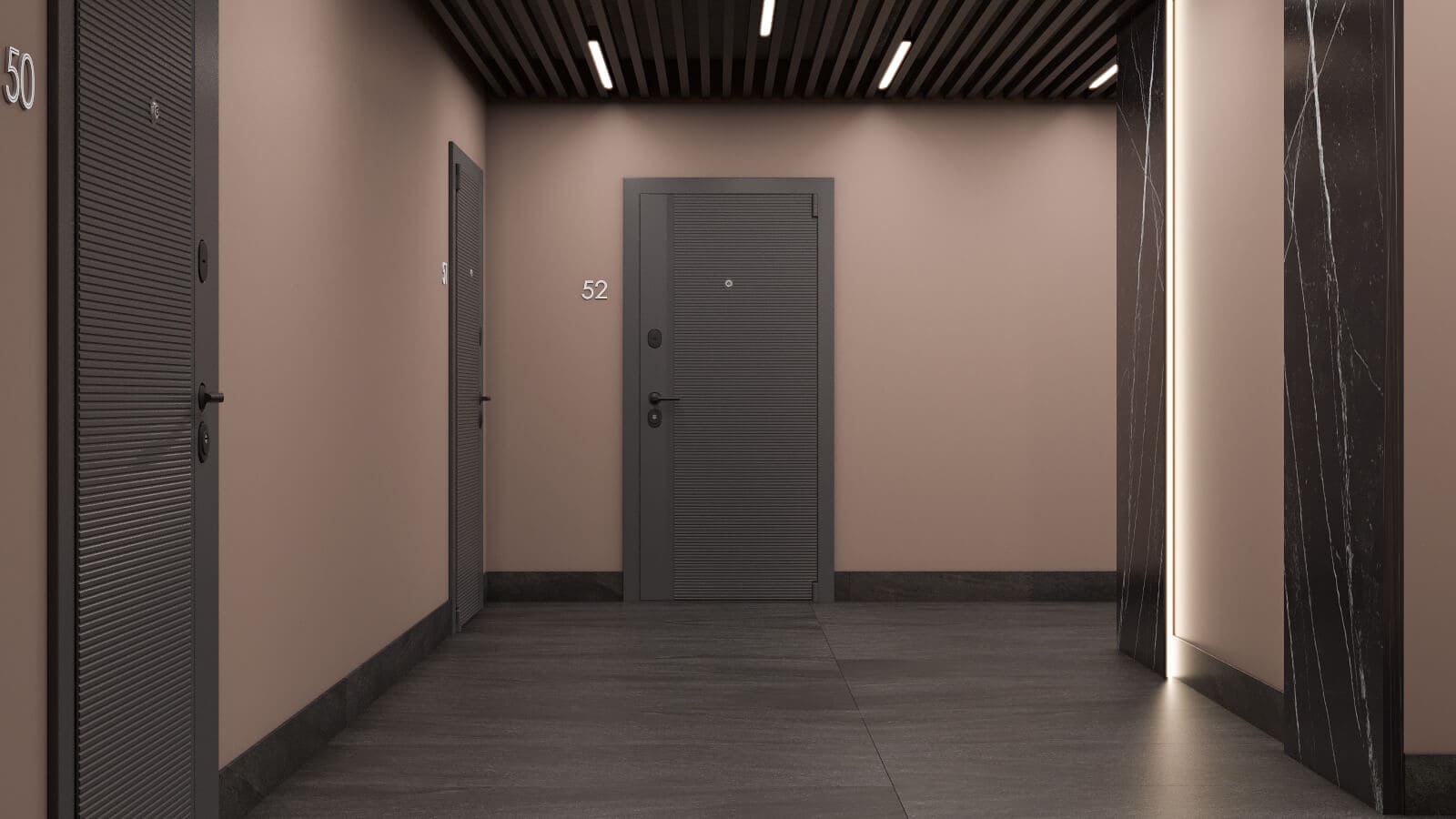 Стильные входные группы с дизайнерской отделкой помещений общего пользования выполнены из высококачественных материалов.