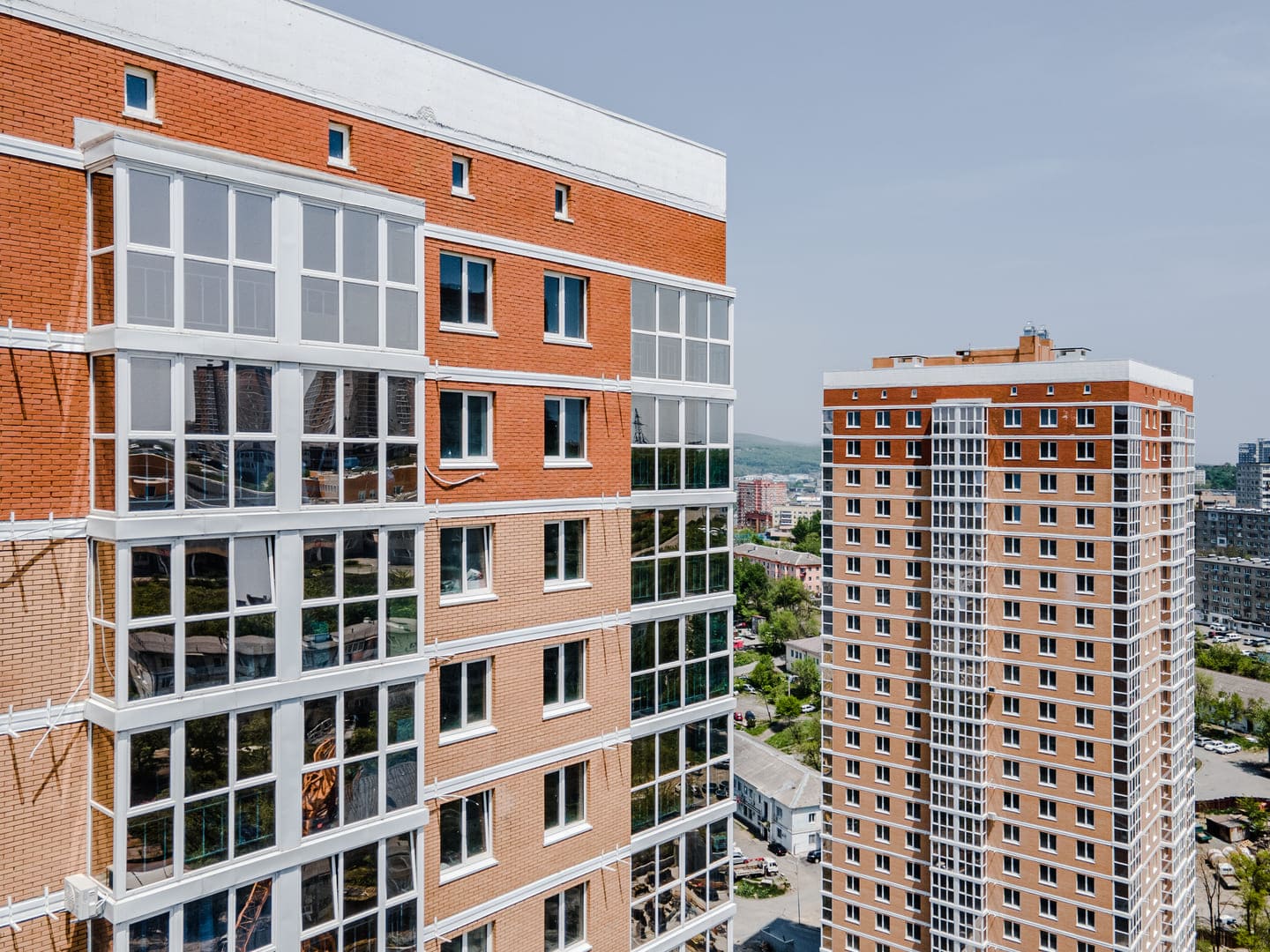 Проектом предусмотрен навесной вентилируемый фасад с облицовочным кирпичем и панорамным остеклением лоджий. Для установки конциционеров предусмотрены специальные упоры на фасаде.