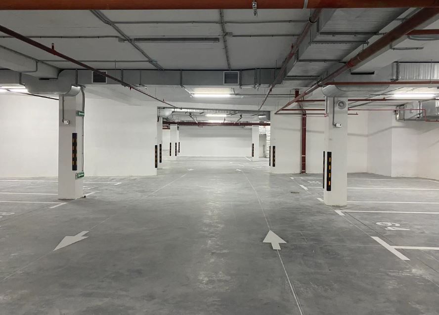 Подземный паркинг на 250 машино-мест расположен в стилобате, на который можно попасть на лифте из квартиры, не выходя на улицу. На нижние этажи парковки можно спуститься по лестнице.