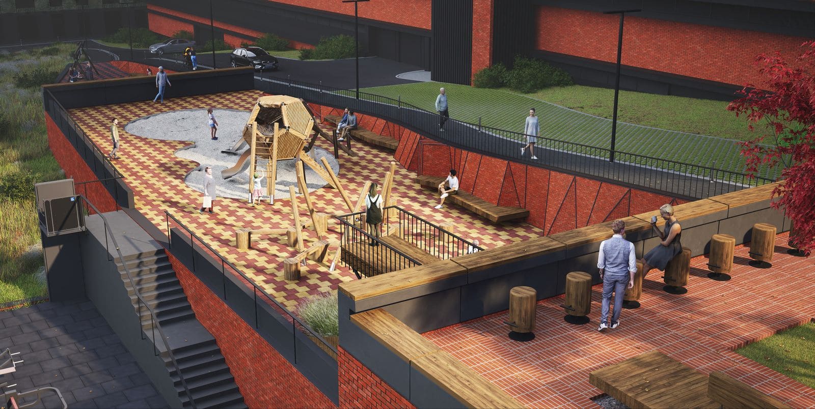 Четыре детские площадки с горками, песочницами и другим разнообразным игровым оборудованием, спроектированные совместно с детскими психологами, предоставляет возможность детям разных возрастов общаться, дружить и обмениваться опытом.