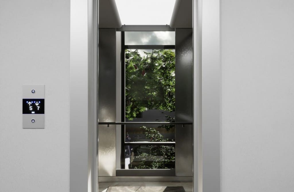 Панорамные лифты расположены на внешней стороне фасада. Стекло и лёгкие конструкции каркаса шахты придают лифтовой зоне потрясающий визуальный эффект. Много солнечного света, панорамный вид на море и прилегающие окрестности служат превосходным преимуществом для людей, которые испытывают острый дискомфорт при прибывании в закрытом пространстве.