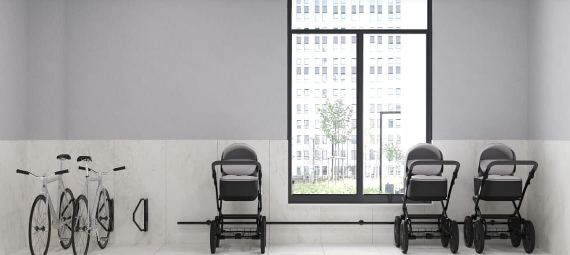 - Колясочные с зоной для велосипедов и самокатов;