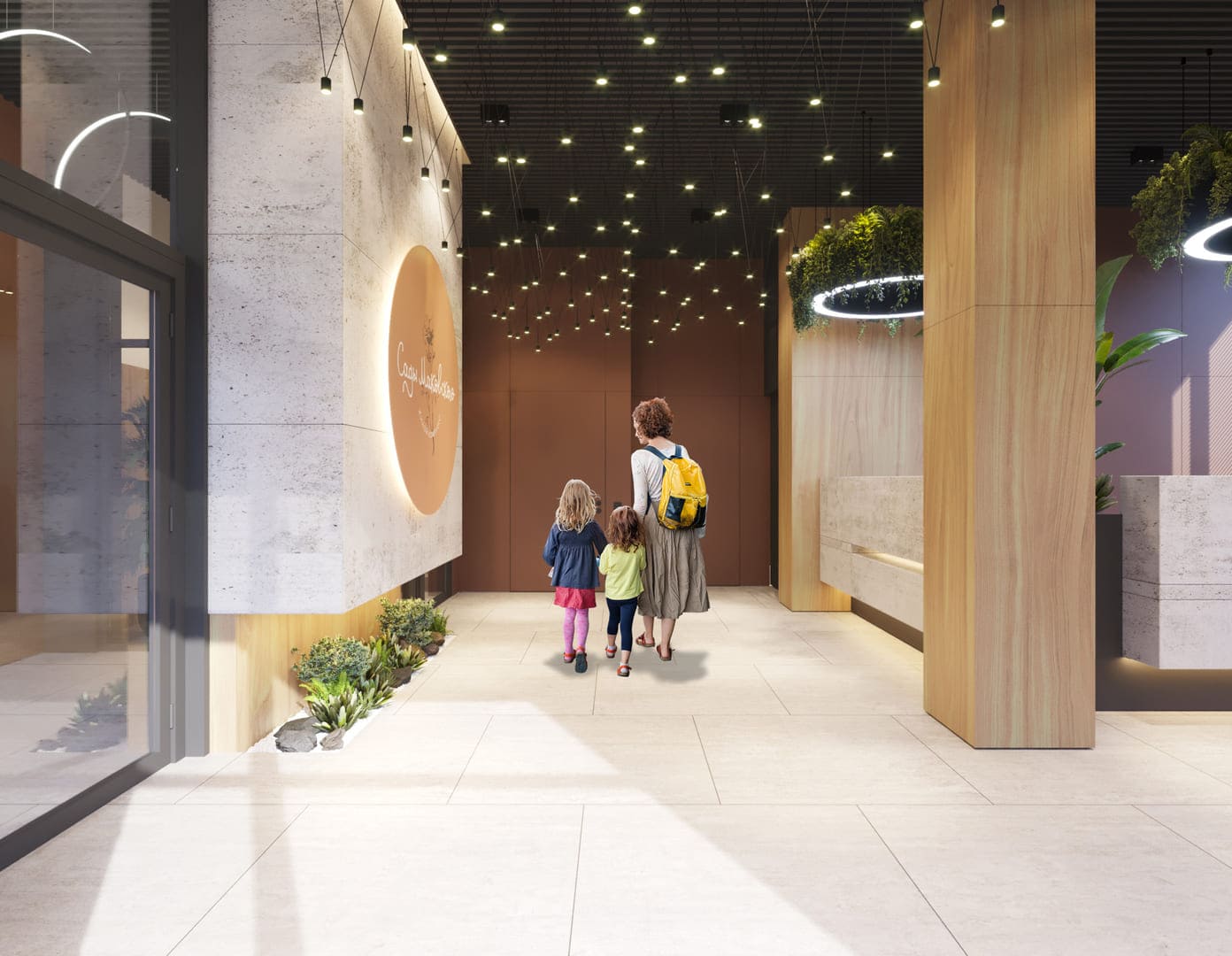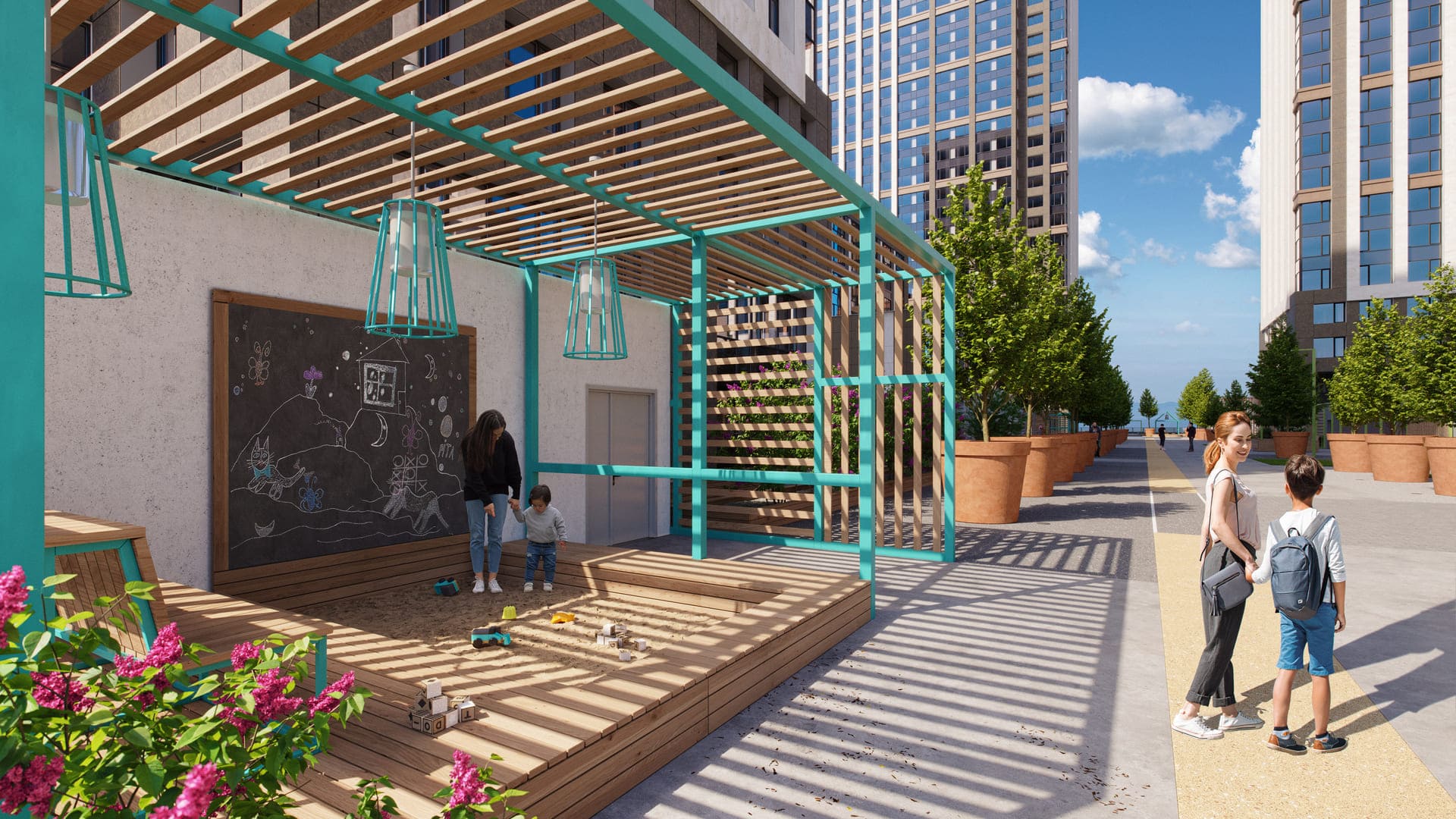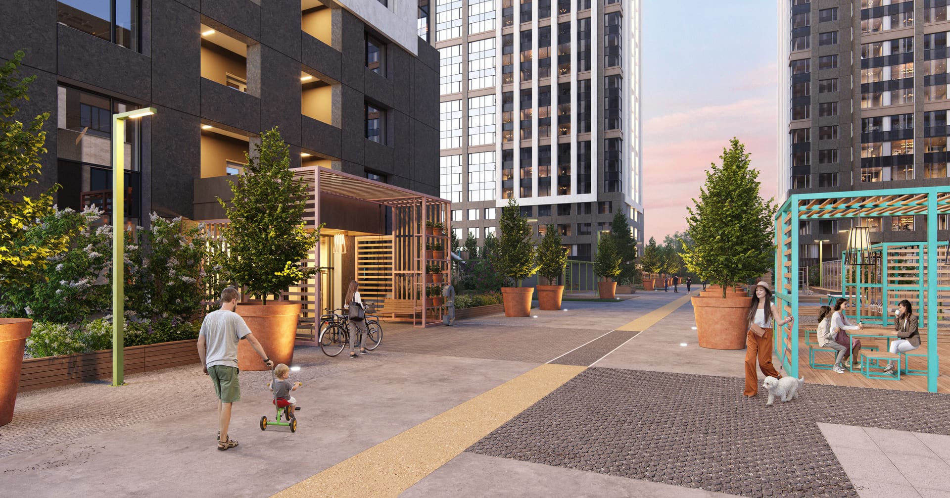 На территории жилого комплекса предусмотрены большой детский игровой городок, аллея для прогулок, площадки для пикников и зоны отдыха, спортивные и воркаут-площадки, а также зоны выгула собак и круговая беговая дорожка.