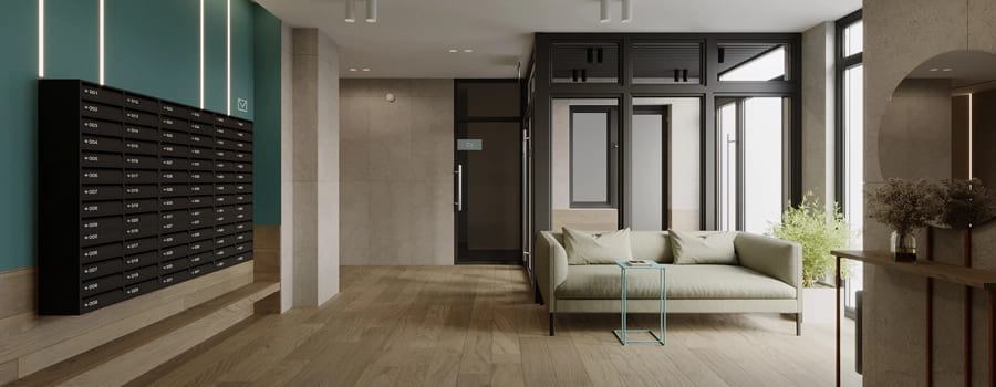 Входные группы с безбарьерным доступом и теплым тамбуром.